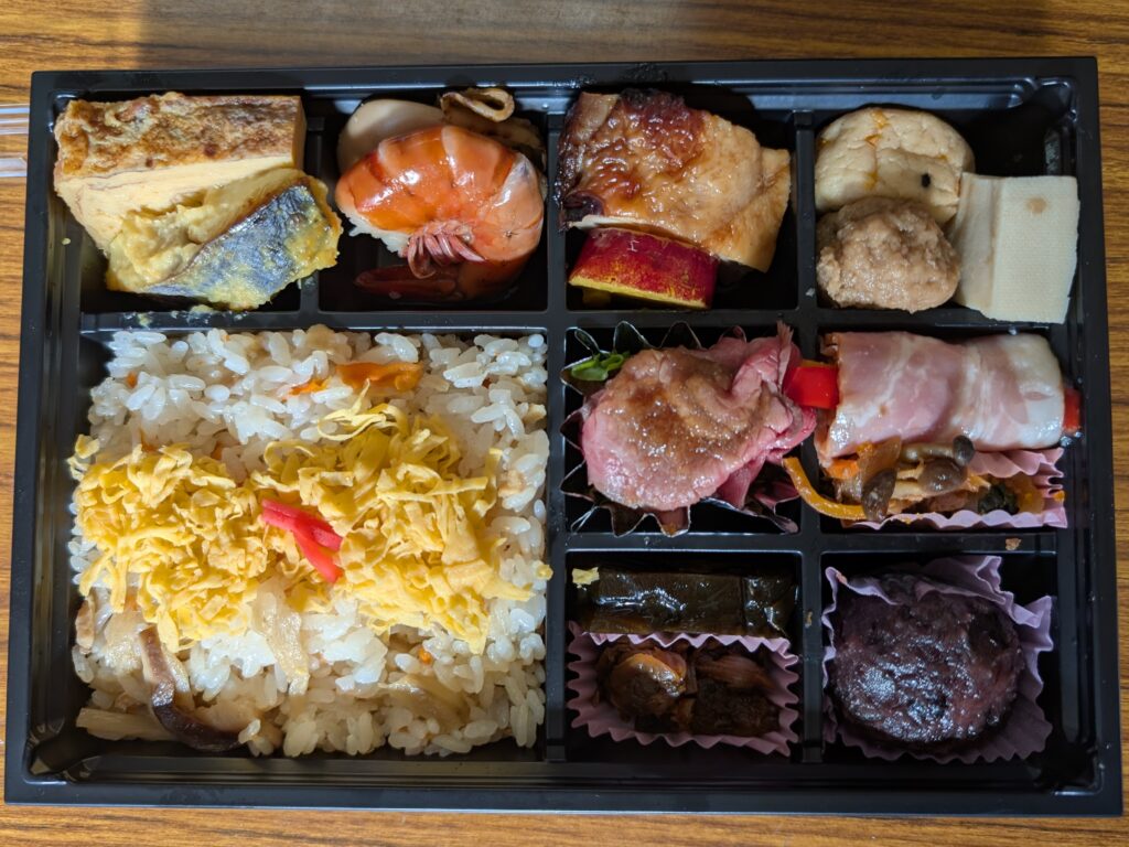 2025.12.19 お知らせ お弁当の日(R7年冬) 今回は6種類のお弁当の中から、特に「エビフライ弁当」「国産牛とローストビーフの食べ比べ弁当」「洋風幕ノ内弁当(デザート付)」が多く注文され、ご好評をいただきました。次回は来年8月に開催予定です。 一覧に戻る